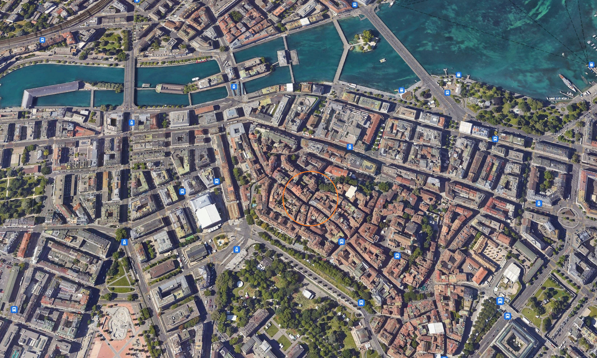 Au cœur de la vieille ville, à moins de 200 mètres des rues Basses, de la Place du Molard, bref de tous les commerces ainsi que des transports publics du centre-ville.